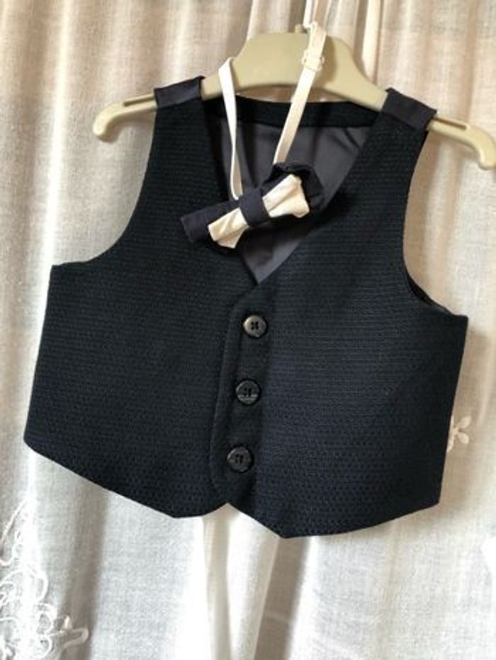 Gilet de costume bleu marine Taille 3/6 mois 68 cm Primark et noeud papillon bleu Marine et blanc Tour de cou réglable, taille unique enfant 10€ les 2 Aisselle à aisselle 26,2 cm Longueur 25,5 cm