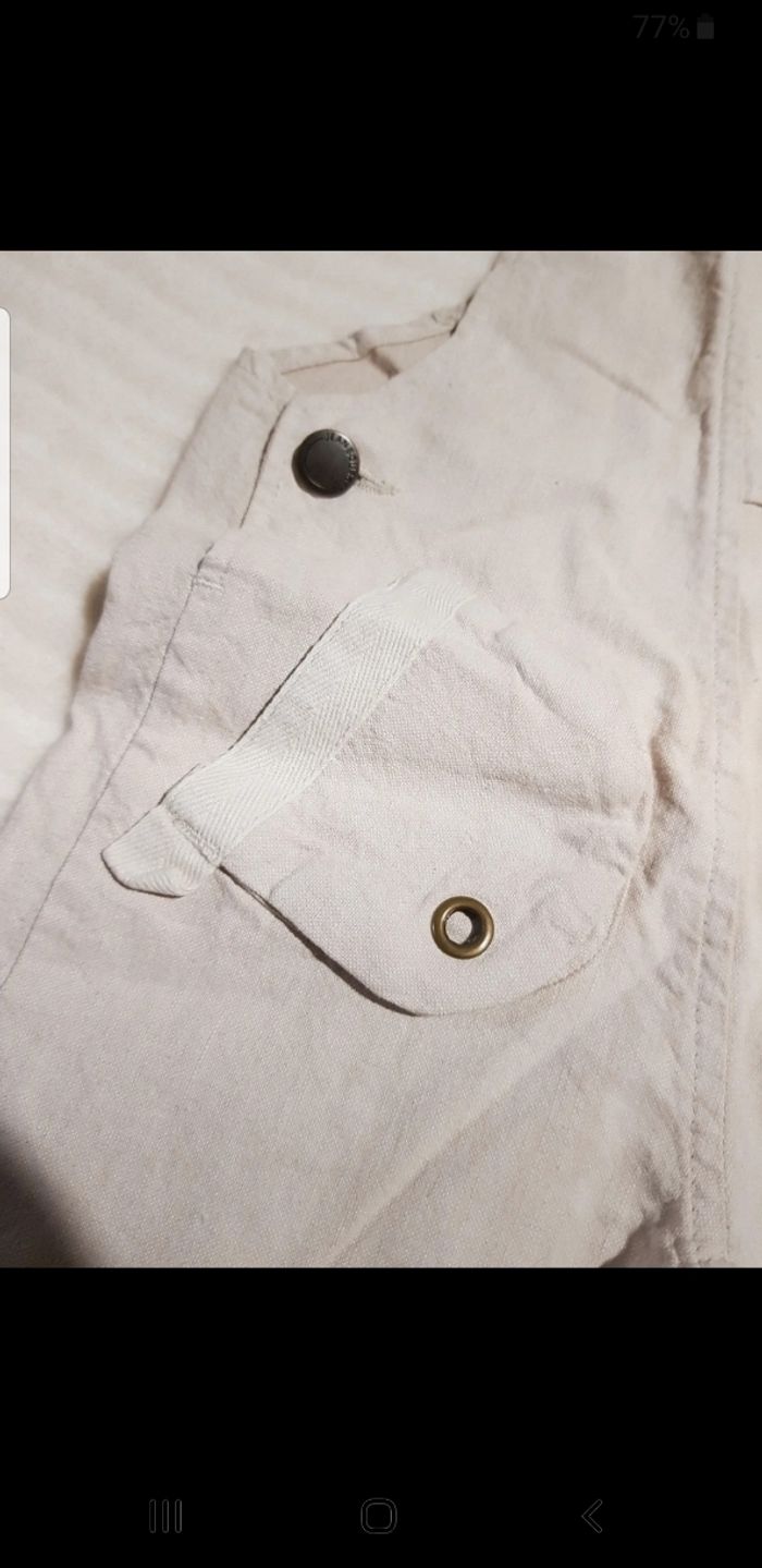 Salopette courte légère pour l été. Réglable au niveau des bretelles. Pressions à l entrejambe