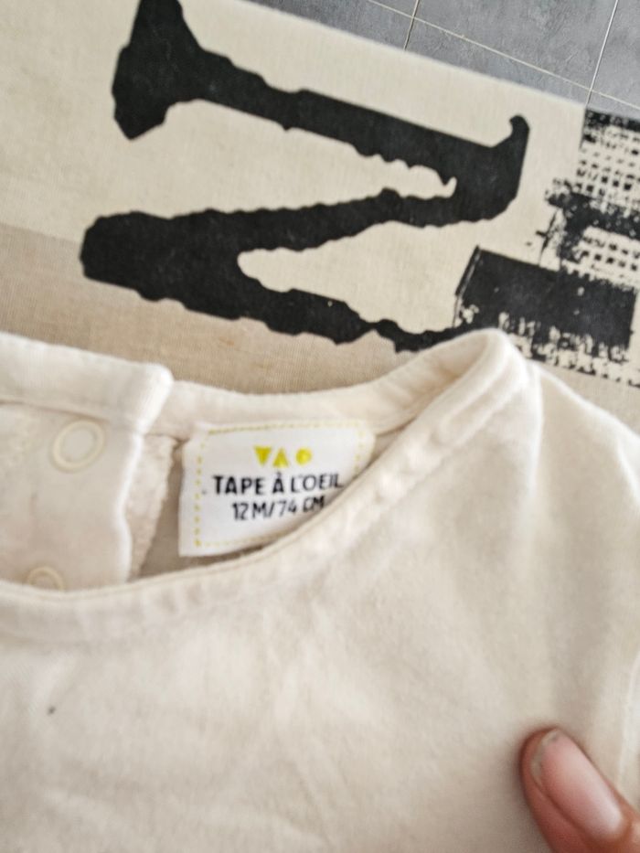 Tee-shirt manches longues en très bon état hormis une toute petite tâche de chocolat à peine visible (voir photo) Taille 12 mois