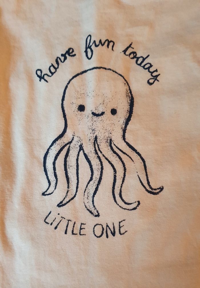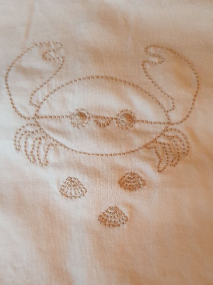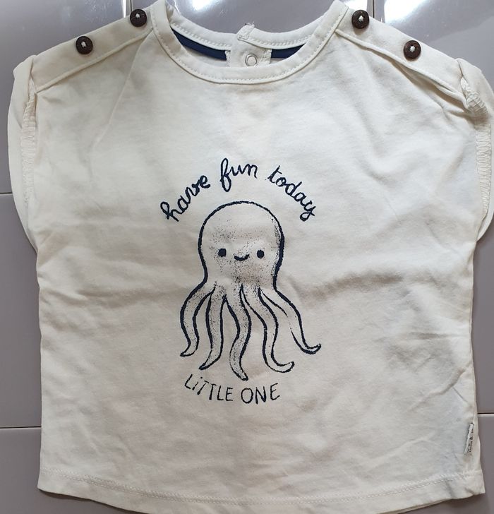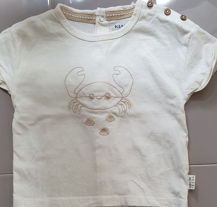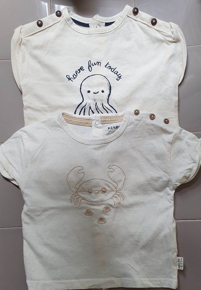 Lot de 2 tee-shirts bébé garçon, taille 9 mois, couleur crème avec motif mer devant, manches courtes, très bon état