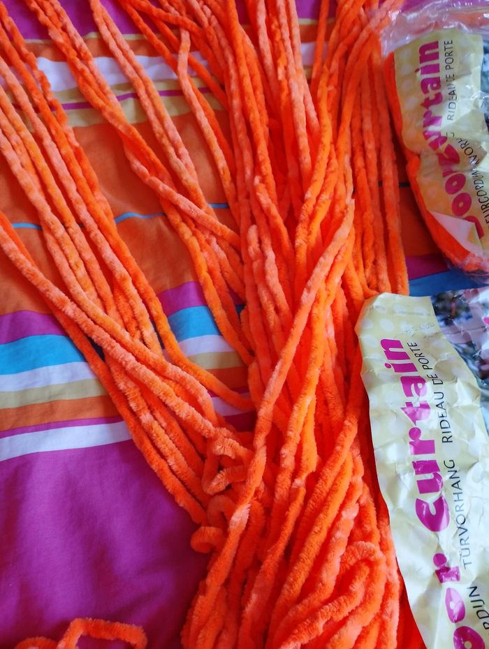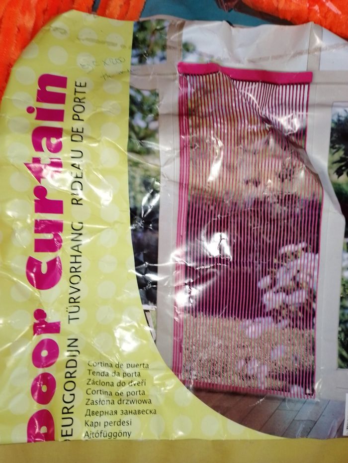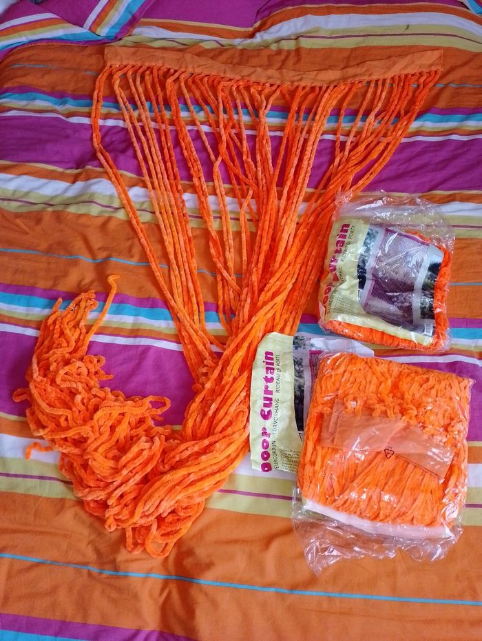 3 Rideau de porte orange fluo (3 neuf encore dans l'emballage) (plus flash en vrai) 90 x 200cm + 5 cm de bandeau 15€ pièce neuf
