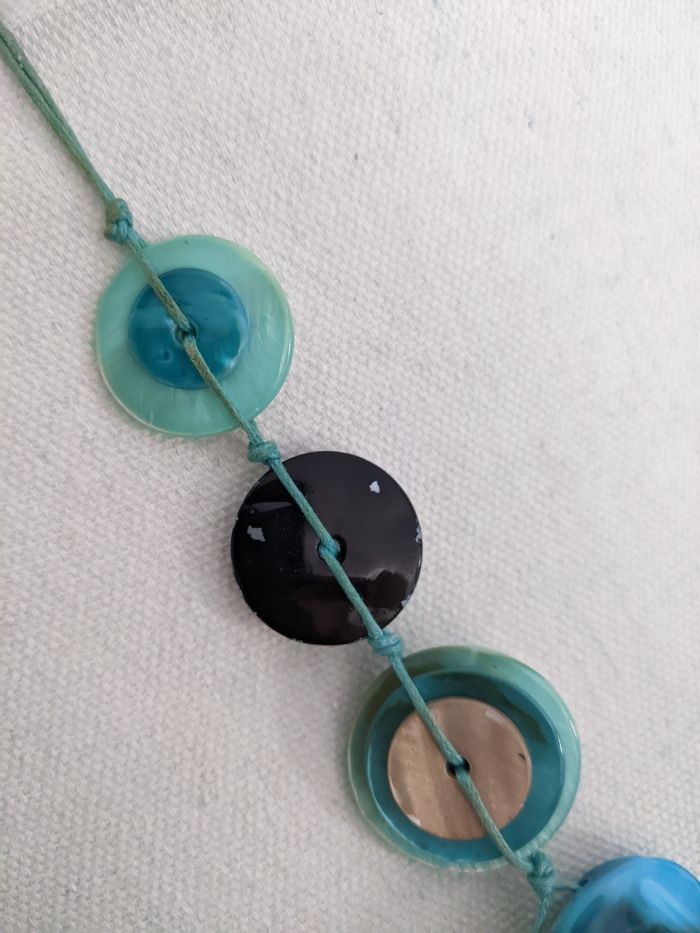 Collier sautoir turquoise et taupe Très bon état général mais certaines pierres ont leur couleur partie par endroits (voir photos 2 et 3) 💍👒👜 #annso5983_accessoires