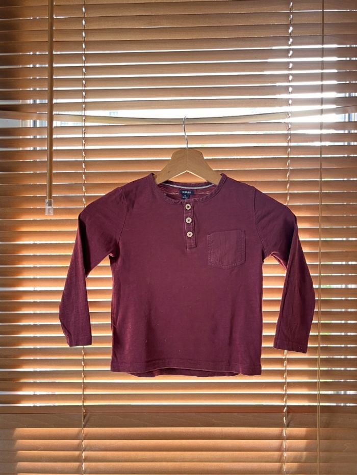 Voici un Tee-Shirt manches longues Kiabi en bon état 😎 ► T-shirt Kiabi → 5ans → 108-113cm ► T-shirt bordeaux ► T-shirt coton → Manches longues → Col rond boutonné 🔍 Rien à signaler 🔖 Hey ! N'oublie pas de profiter de nos offres promotionnelles 🛒 Si tu ajoutes 2 articles ☛ - 10% 🛒 Si tu ajoutes 3 articles ☛ - 20% 🛒 Si tu ajoutes 5 articles ☛ - 30% 📦 Expédition 24h-48h Au plaisir d'échanger avec toi !