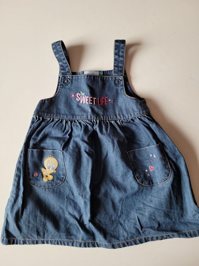 Robe en jean Bretelles non réglables Motif disney titi Taille 36 mois