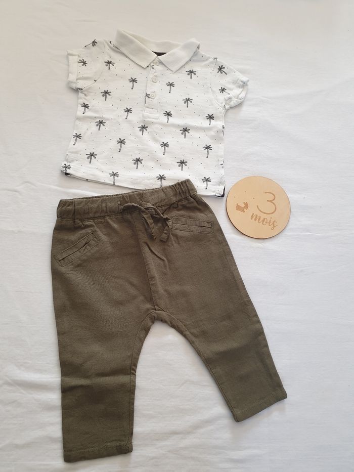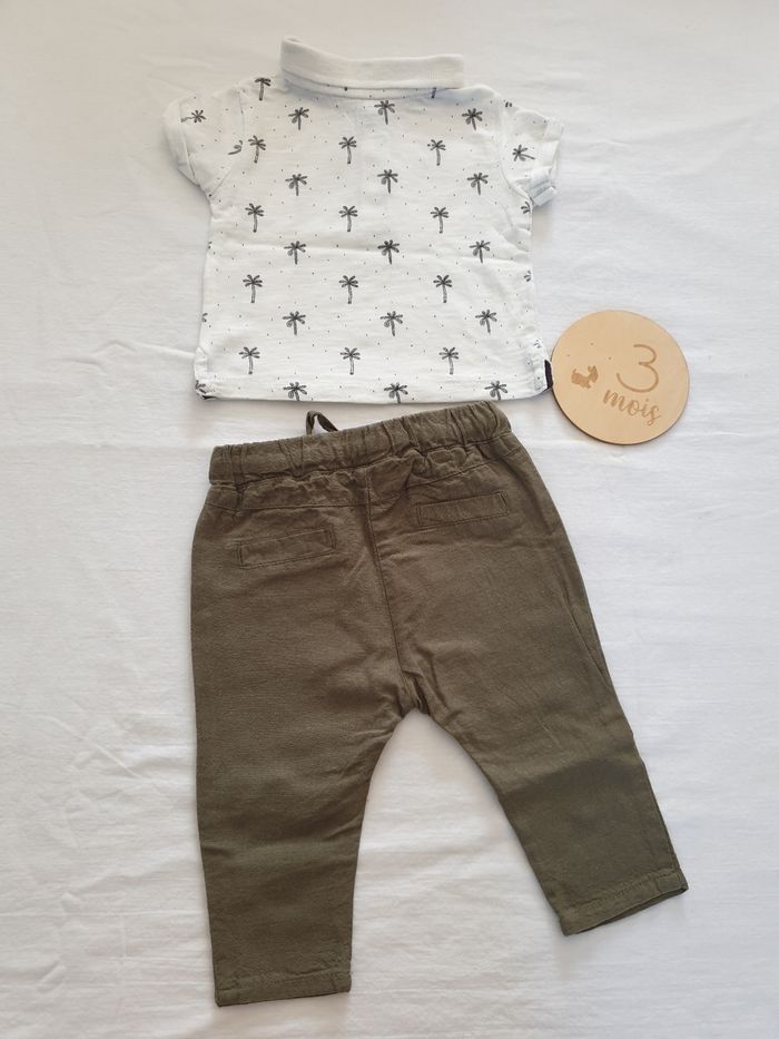 Polo 3 mois et pantalon en lin kaki 3 mois