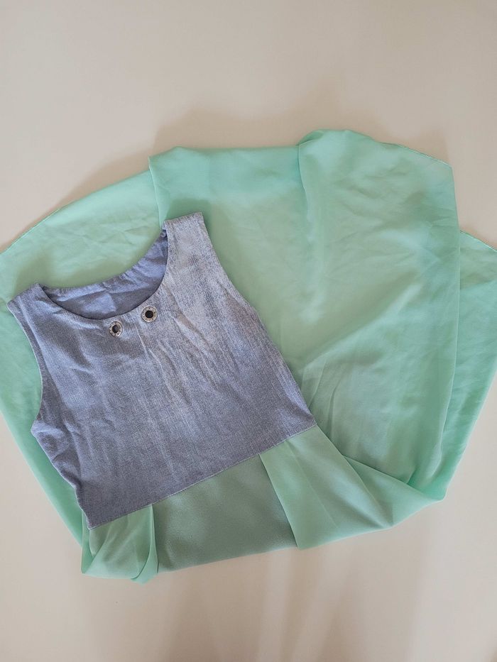 Robe courte et longue derrière 8ans Haut 95%coton 5% elastane Bas 95% polyester 5% elastane Manque tour de cou