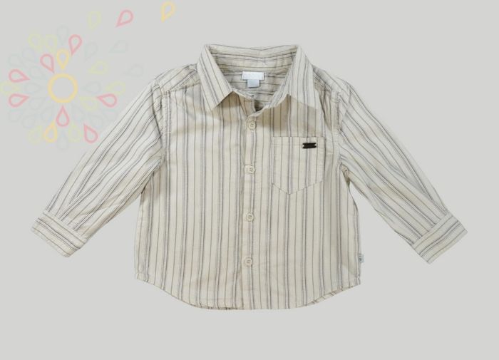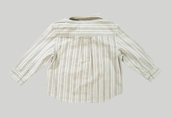 Chemise manches longues popeline écru rayures Obaïbi 12 mois 74 cm garçon