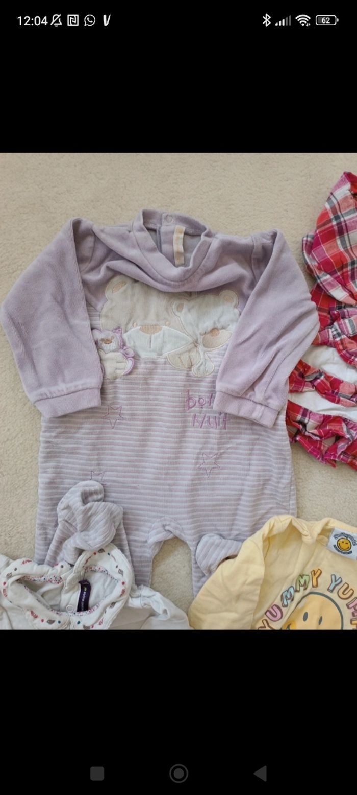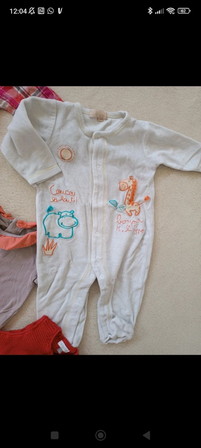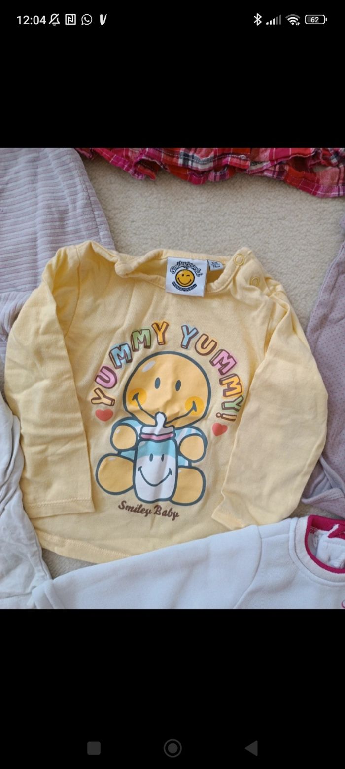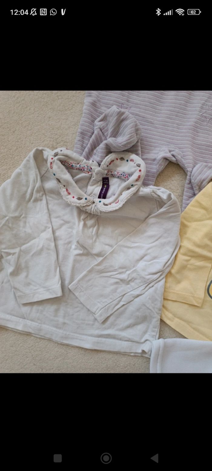 Lot 12 mois fille : 1 pyjama gemo, 1 pyjama canari baby, 1 body tape a l'œil manche courte, une robe gemo, t-shirt blanc sergent major, 1 jaune smileyworld, 1 gilet sans manche absorba et un pull blanc
