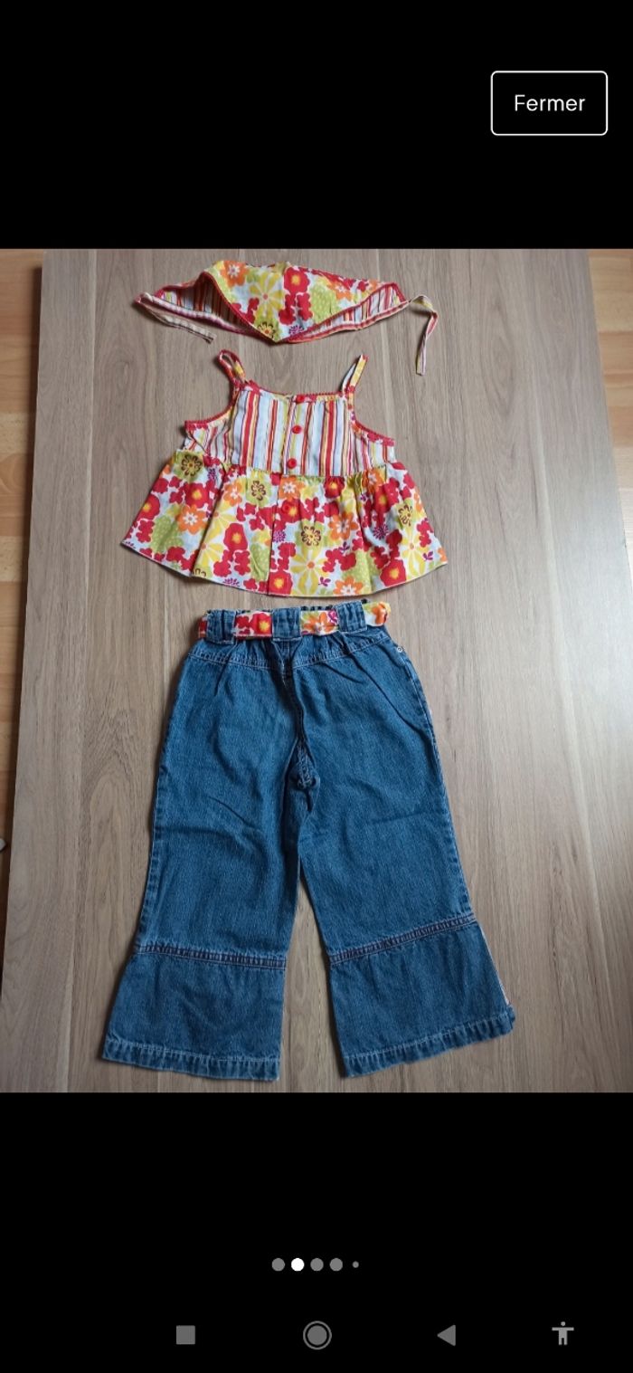 Ensemble 5 ans Vertbaudet au kids un foulard pour les cheveux un haut et un Jean avec broderie