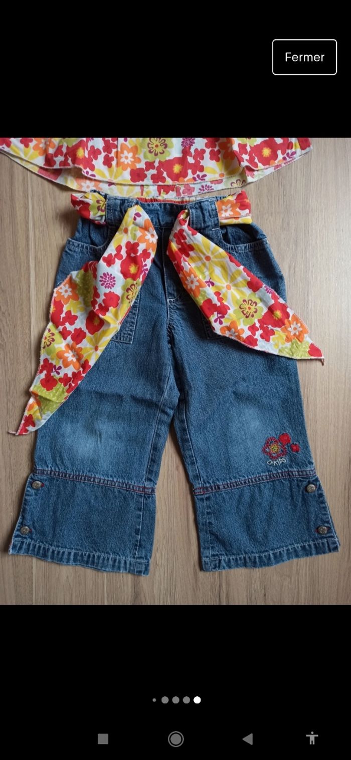 Ensemble 5 ans Vertbaudet au kids un foulard pour les cheveux un haut et un Jean avec broderie - photo numéro 2