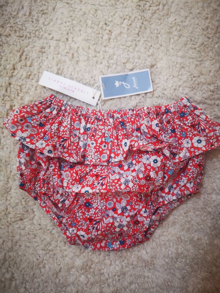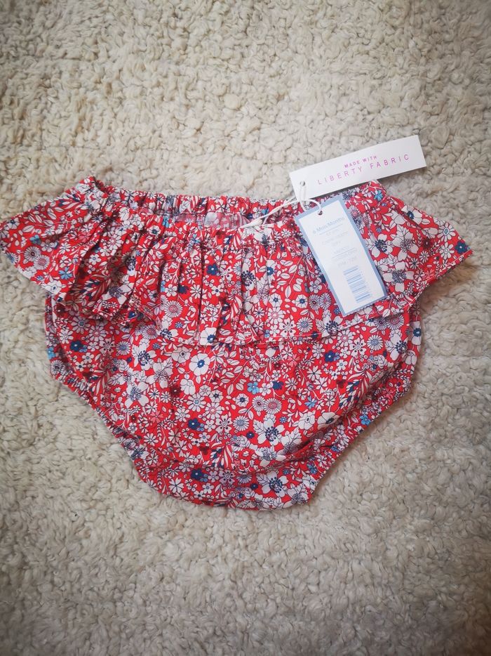 Neuve, trop mignonne. Cache couche rouge avec des fleurs. Taille 6 mois (67cm)