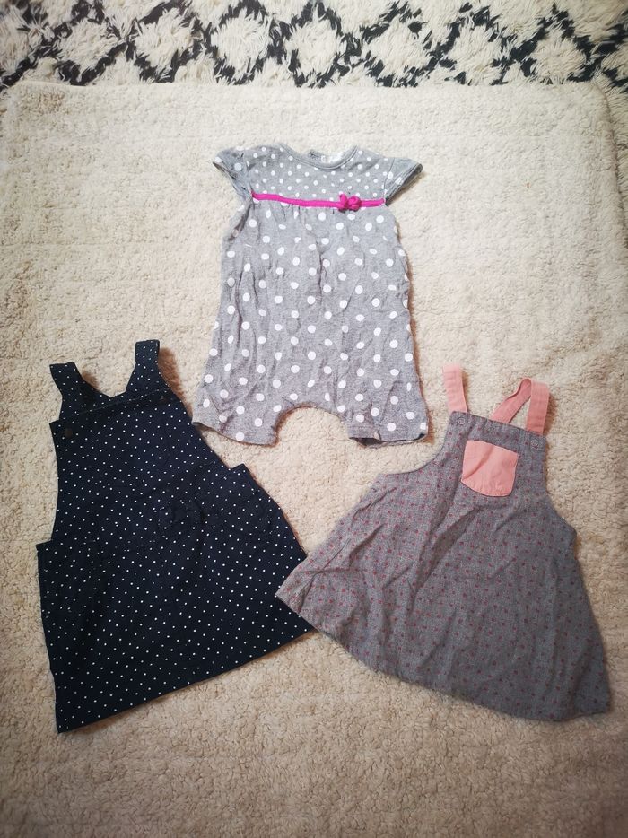 2 robes et 1 combi en coton Marque Kiabi et Kitchoun En parfait état.