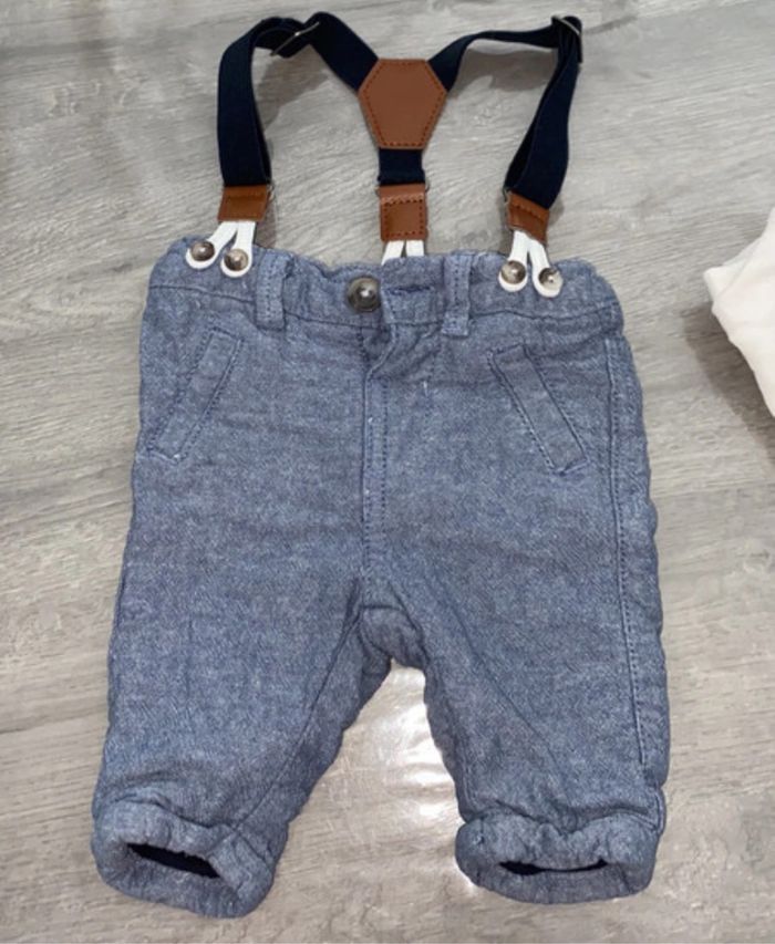 Pantalon bebe avec bretelles en 1 mois et en très bon état