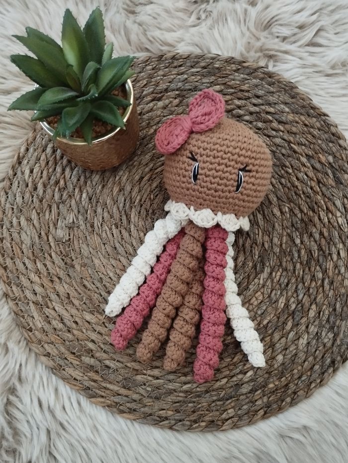Pieuvre en coton oeko tex, ouate de rembourrage hypoallergénique Hauteur environ 25 cm Différents coloris possibles