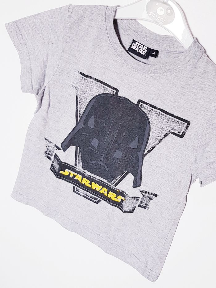 T-shirt à manches courtes STAR WARS motif "Dark Vador" effet délavé d'origine 🧒 Taille : 3 ans ❌ Excellent état, juste un petit accro sur une manche (voir photo) qui sera recousu pour la vente
