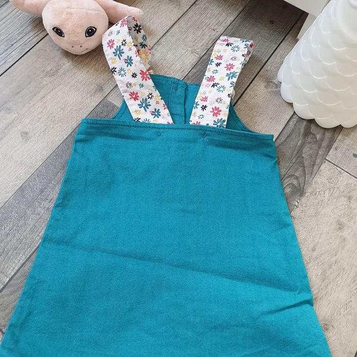 Jolie robe turquoise neuve Bretelles en tissu avec motif fleurs Taille 24 mois Marque Gémo NEUVE