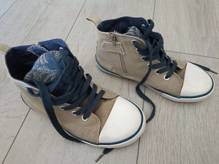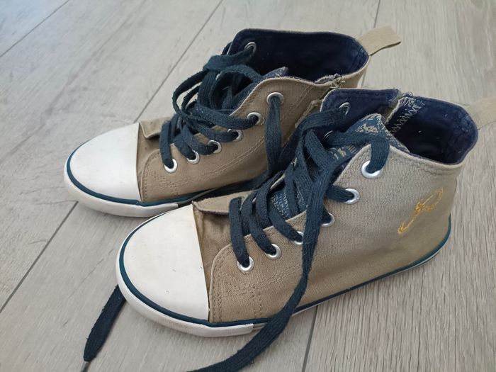 Vends paire de tennis montantes en toile Fermeture éclair sur le côté et lacets