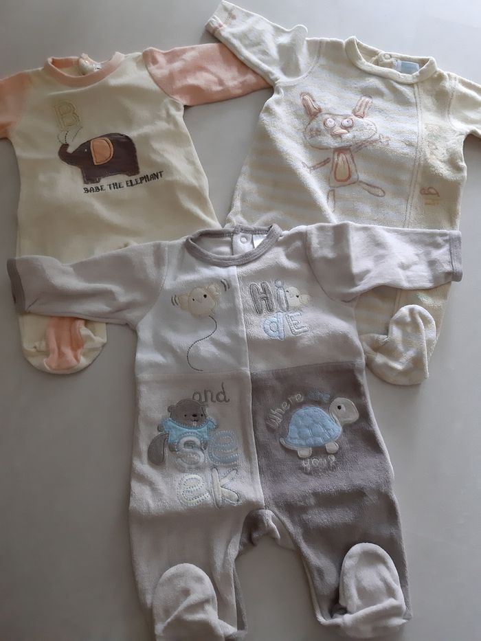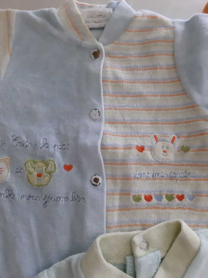 Lot de 6 pyjamas 1 mois La couleur est un peu partie sur les pressions d'un des pyjamas (voir photo)