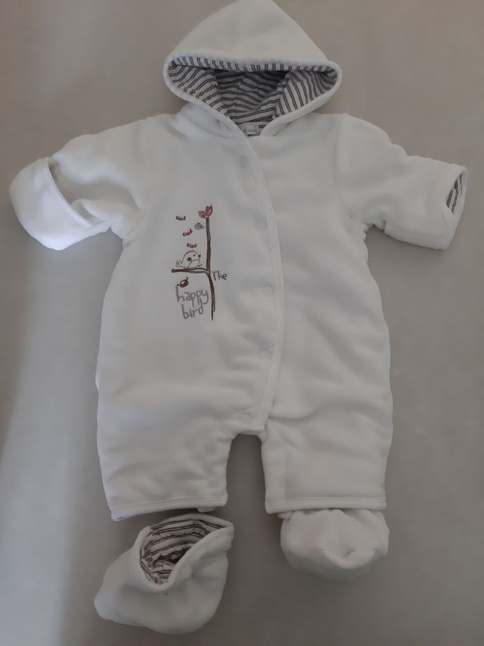 Combinaison 1 mois Les pieds peuvent s'enlever grace à des pressions et les bouts des manches peuvent être retournés pour former des moufles