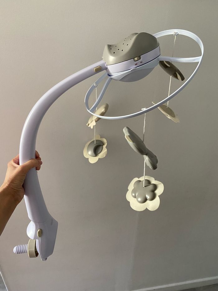 Mobile et projecteur multi-étapes : mobile musical, projecteur et lampe de chevet Joue de la musique apaisante et s'éteint automatiquement au bout de 20 minutes Mode réveil en douceur Excellent état