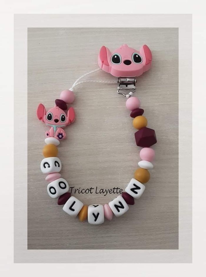 Attache tétine en silicone personnalisé au prénom de votre enfant (envoyez moi un message pour la personnalisation) Possibilité de rajouter un adaptateur en silicone pour les tétines Mam (+0,75€) (me contacter avant l'achat pour que je modifie le prix) Délais de fabrication et d'envoi : environ 3 jours (hors dimanche et jour férié) Les couleurs peuvent être changées à votre demande. L'attache tétine ne sera faites qu'une fois le paiement validé, une photo vous sera envoyée avant l'envoi du colis.