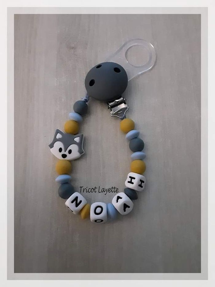 Attache tétine en silicone personnalisé au prénom de votre enfant (envoyez moi un message pour la personnalisation) Possibilité de rajouter un adaptateur en silicone pour les tétines Mam (+0,75€) (me contacter avant l'achat pour que je modifie le prix) Délais de fabrication et d'envoi : environ 3 jours (hors dimanche et jour férié) Les couleurs peuvent être changées à votre demande. L'attache tétine ne sera faites qu'une fois le paiement validé, une photo vous sera envoyée avant l'envoi du colis.