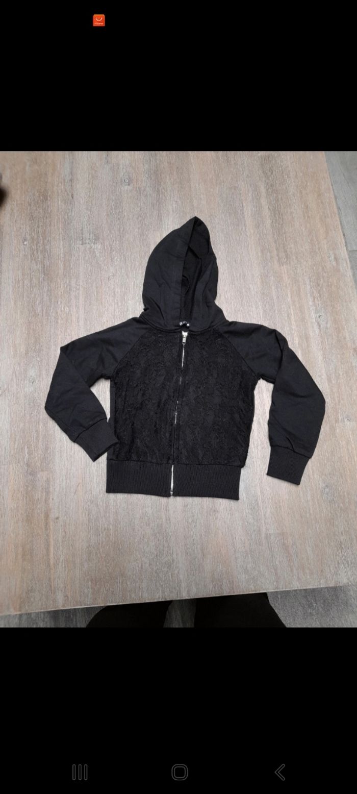 Gilet à capuche noir dentelle devant