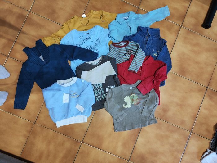 Ce lots de vêtements se compose de 10 t-shirt à manches longues en bon état.