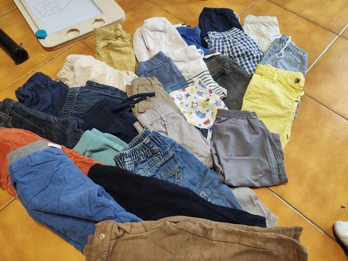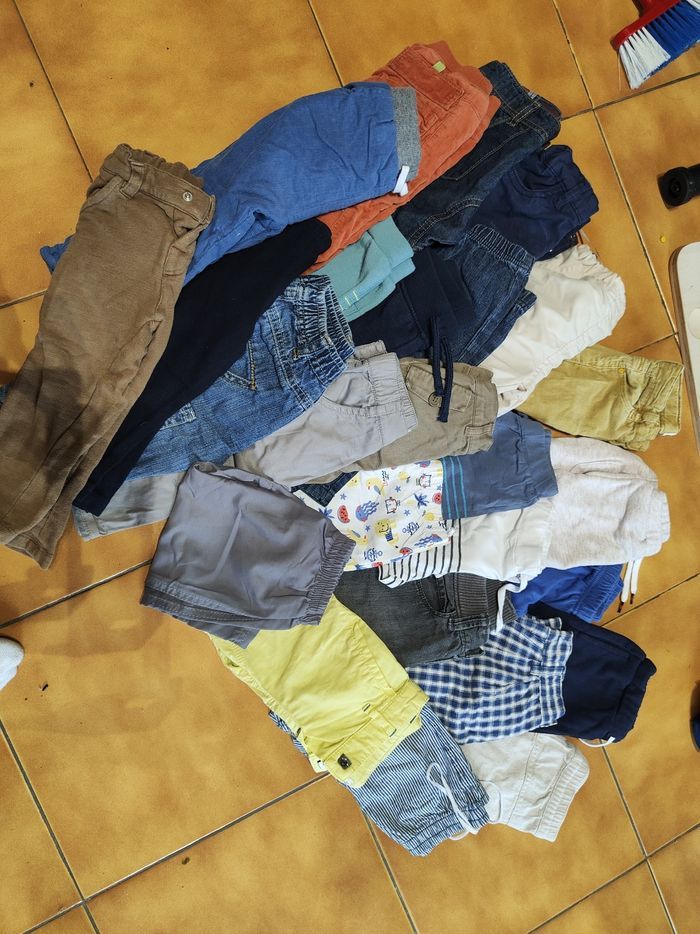 Dans ce lot il y a 15 pantalons et 11 short de 12 à 18 mois en bon état.