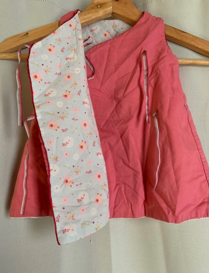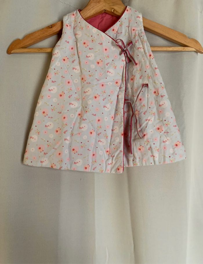 Je vends une petite robe rose réversible, en très bon état! Taille : 3mois