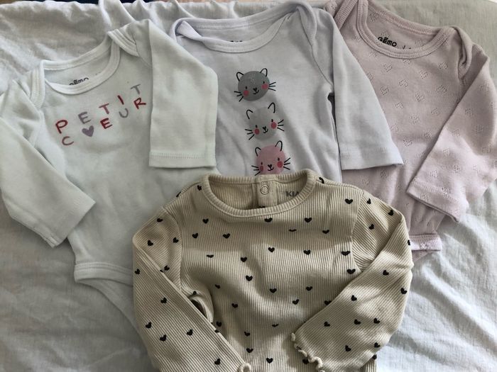 Lot 4 bodies taille 1 mois Gemo & Kiabi