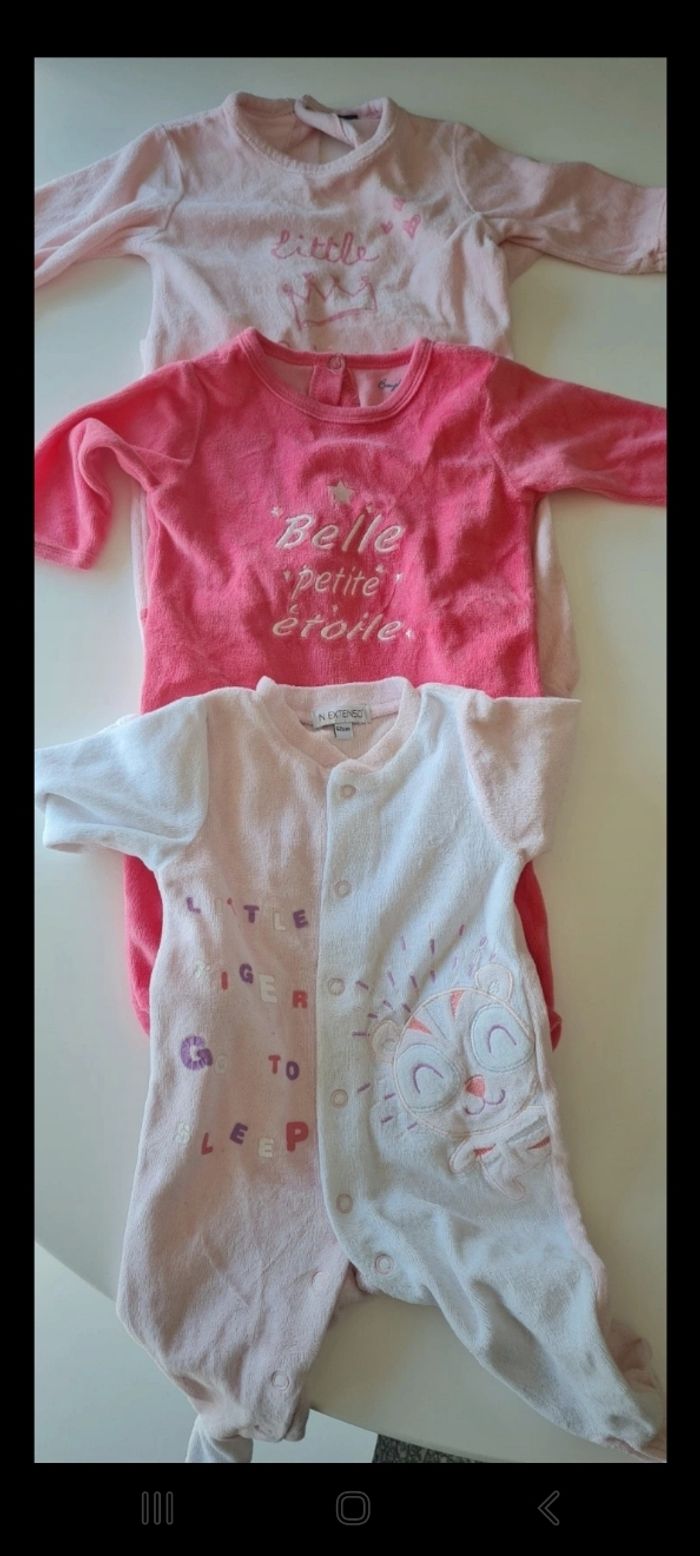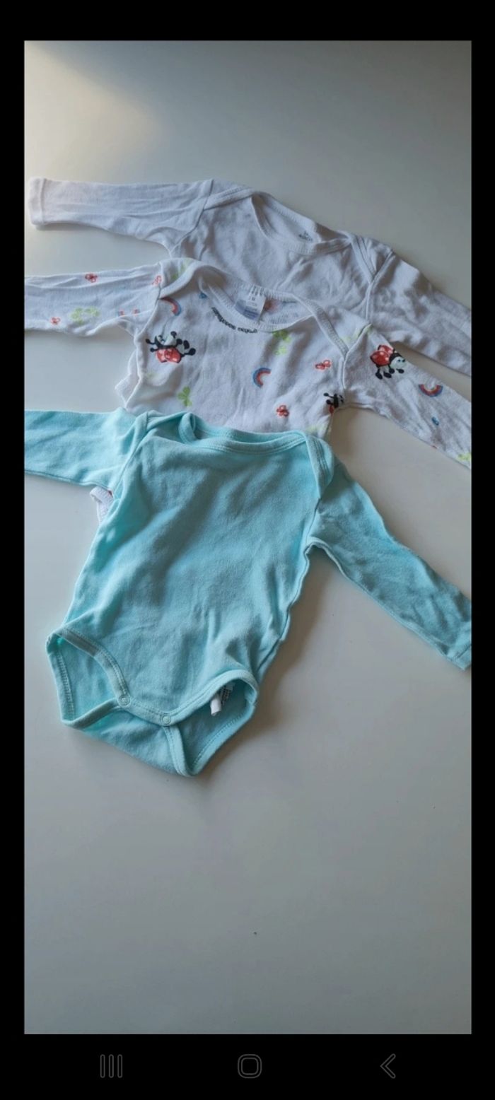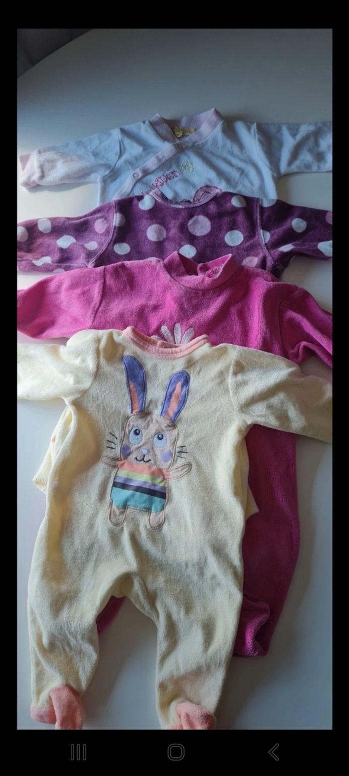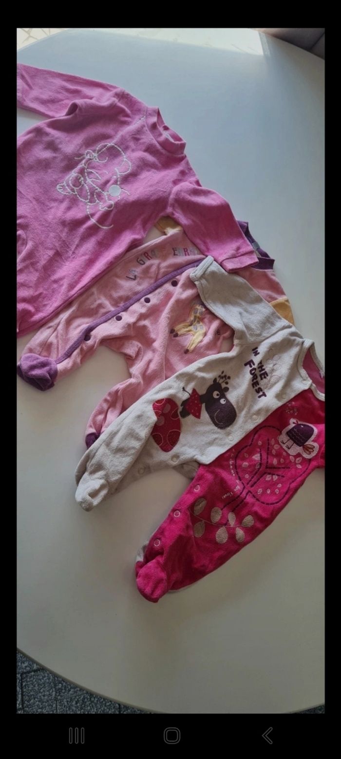 Lot de vêtements pour fille taille 3 MOIS 10 pyjama pour le froid 2 body manche courtes 3 body manche longues 1 robe rose à noeud 1 robe rouge fermeture arrière zip 1 short minnie Bon état general