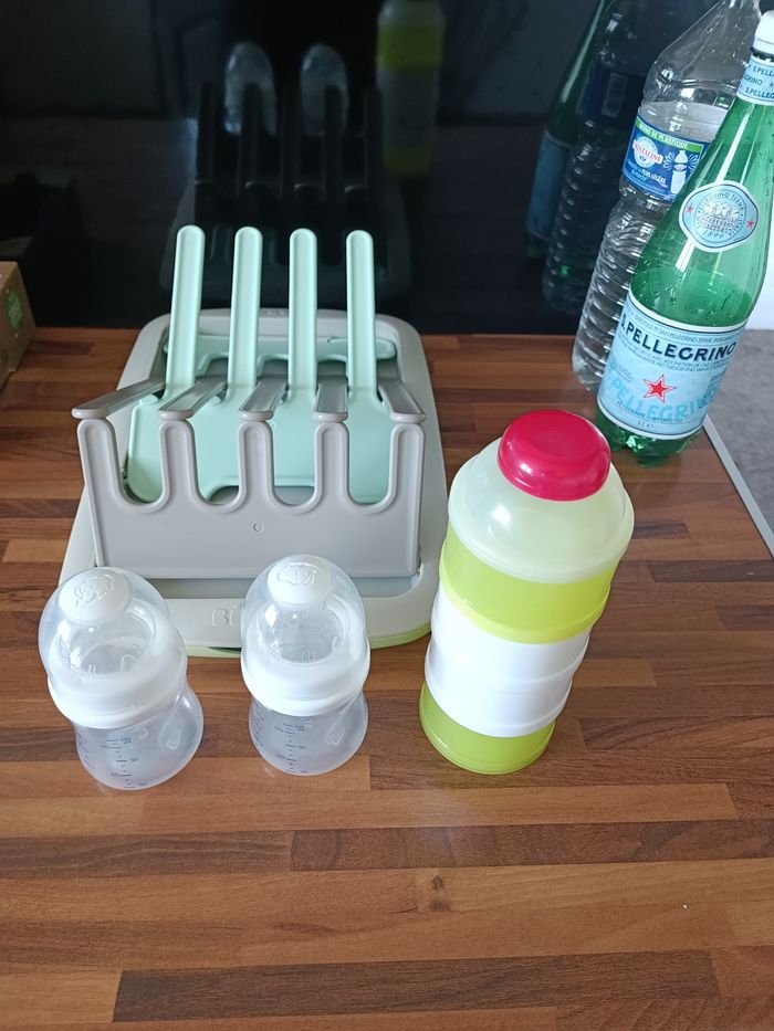 Lot de deux biberons avec tétines neuves,doseur et égouttoir bébé