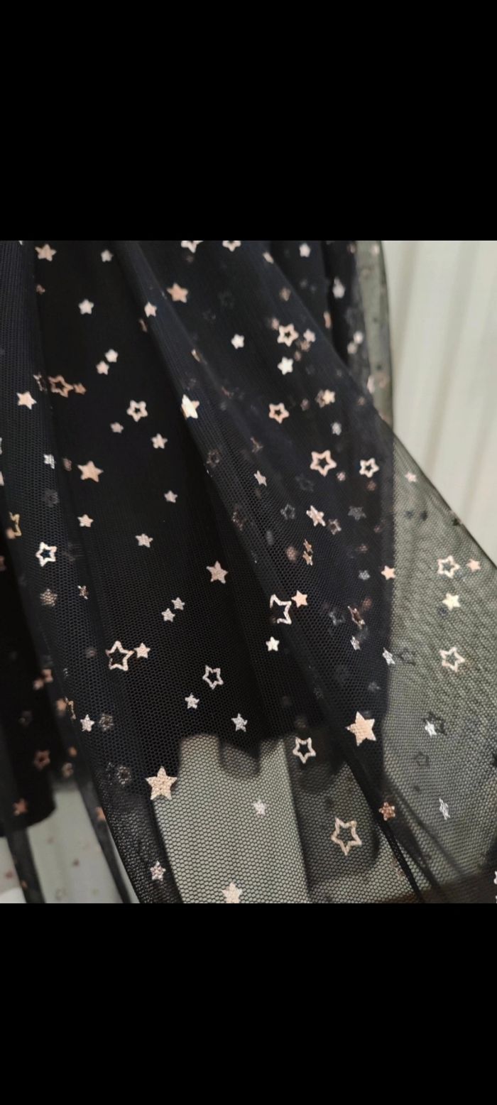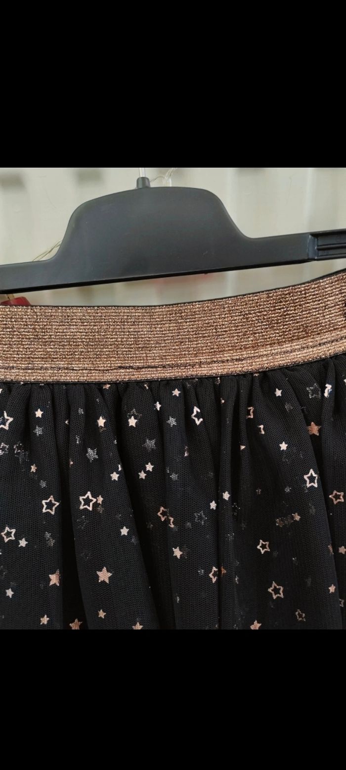 🖤Superbe jupe noir avec tulle sur le dessus, motif étoiles, doublé, ceinture élastique doré. 🖤Excellent état, porté et lavé 1fois. 🖤Voir photos pour les détails. ❌Prix non négociable.❌ 🖤Sans marque. 💰Réduction sur lot activées. #pnmettefille10ans