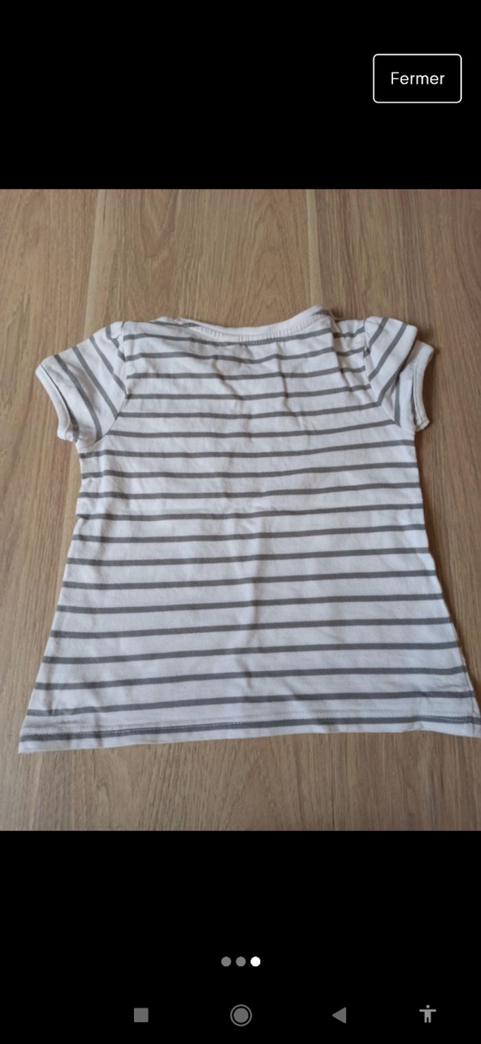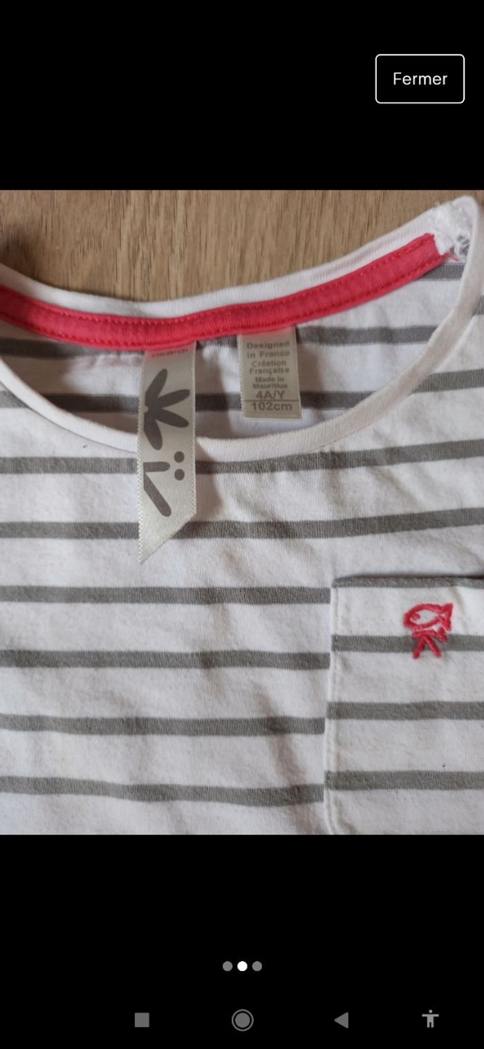 T-shirt marinière Okaïdi 4 ans blanc et gris - photo numéro 2