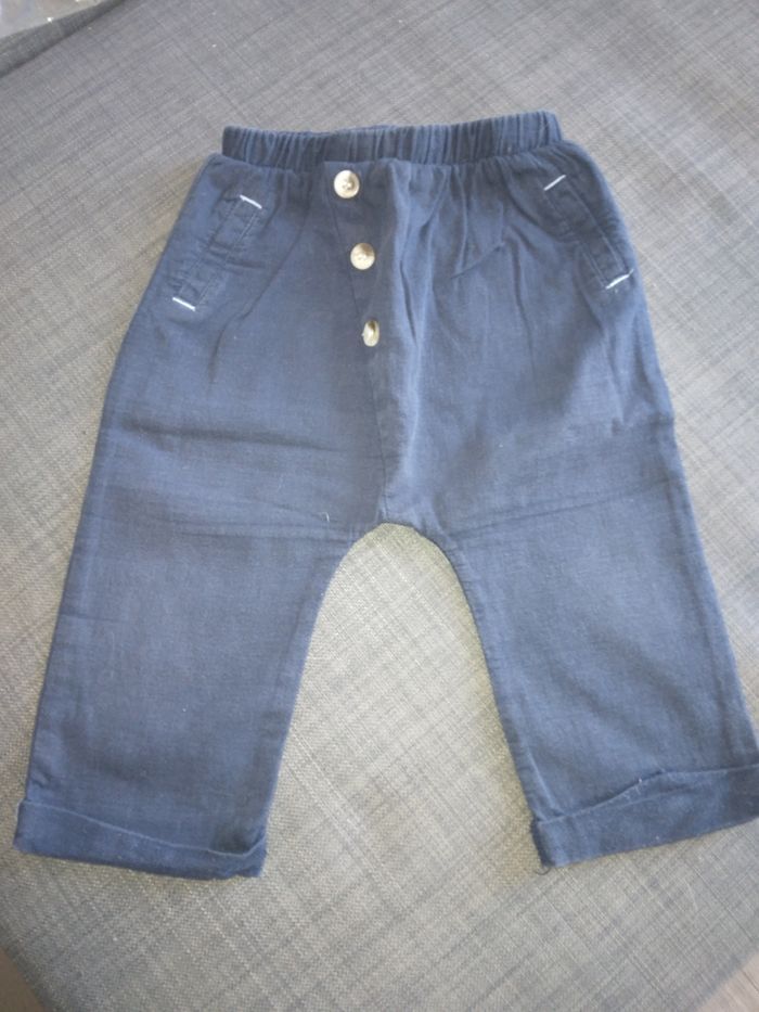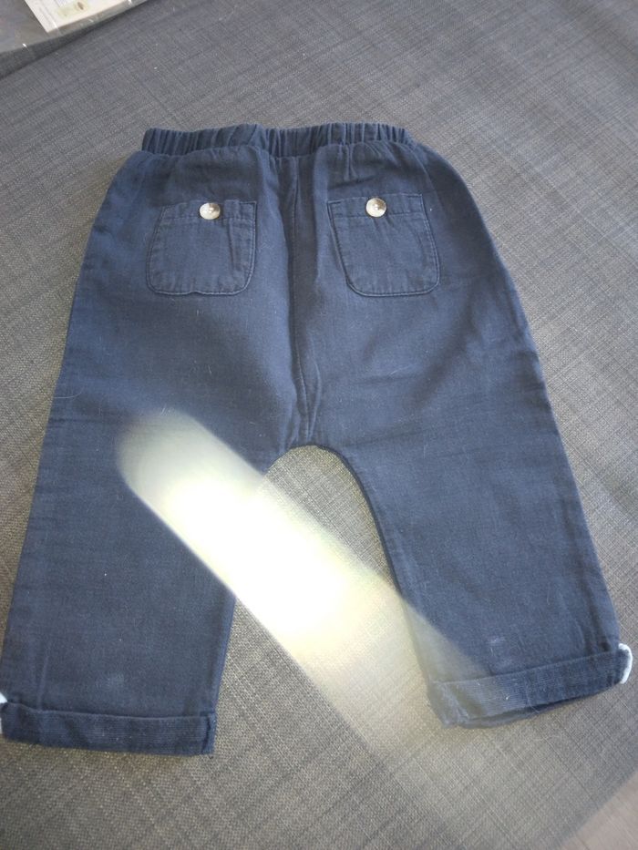 Pantalon en TBE Les boutons sont là uniquement en décoration. Taille=> 12mois=> 73/76CM=> 10kilos Marque=> kiabi Maison non-fumeur sans animaux