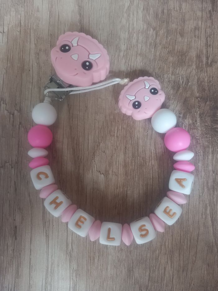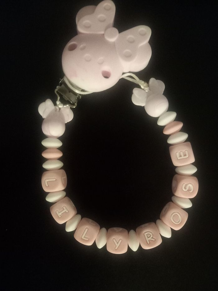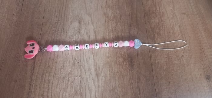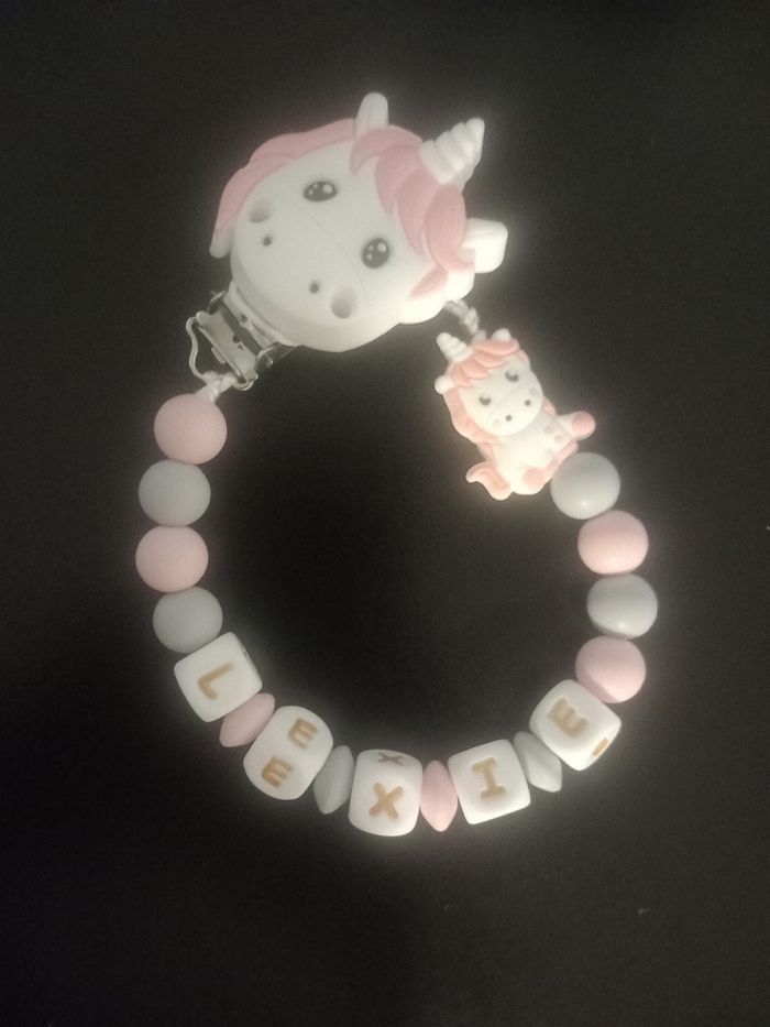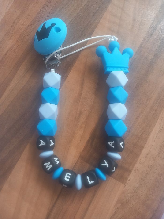 Bonjour, je suis une créatrice de attache tétine selon vos goûts il faut juste m'envoyer un message privé. Attache tétine 15€. Attache tétine disney 18€. Anneaux de dentition 10€. Anneaux de dentition disney 13€. Porte clé 10€. Porte clé disney 13€. ⚠️les prix peuvent varier en fonction des demandes⚠️ ⚠️Je suis sur charleroi et liège⚠️ ⚠️Pour plus de renseignements veuillez me contacter en message privé ⚠️