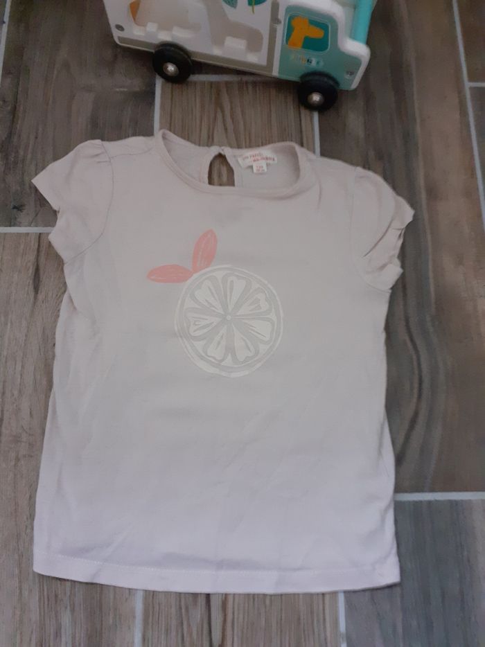 Tee-shirt à manches courtes motif orange taille 4 ans , porté , en très bon état.