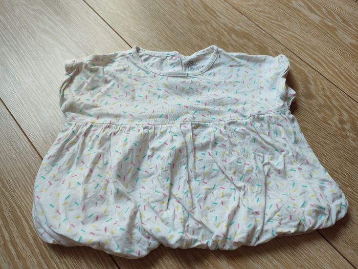 Tee shirt blanc avec trait de couleur. Très bon état taille 12 mois marque liberto