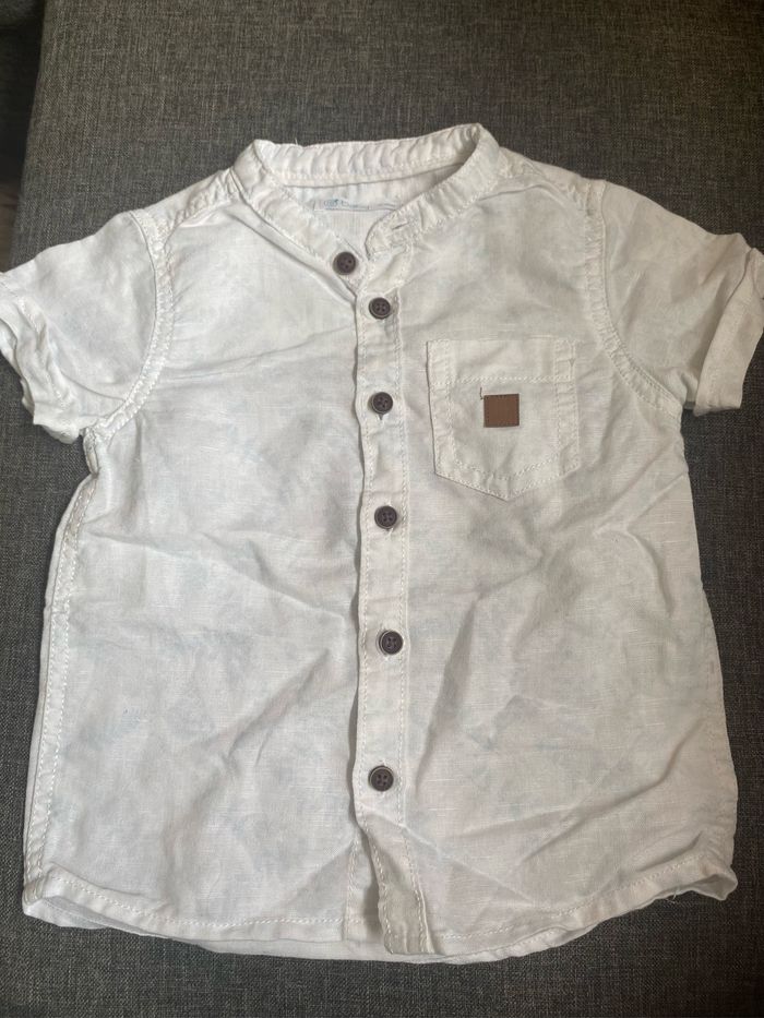 Chemise manche courte blanche avec des effets bleu en forme de palmier