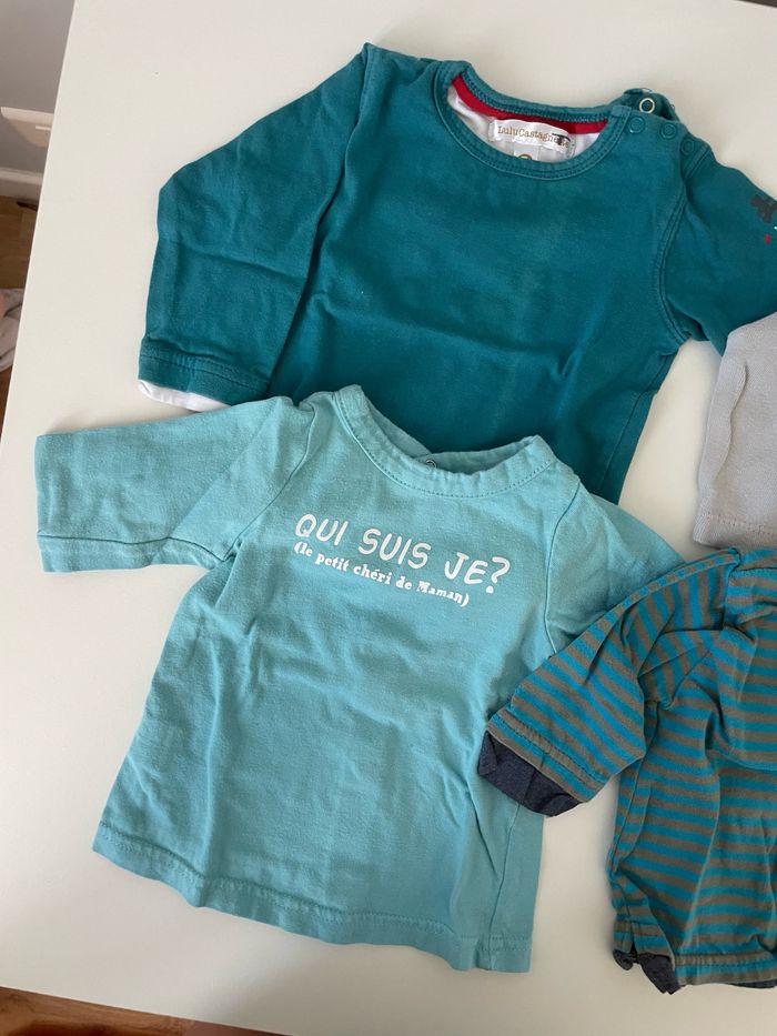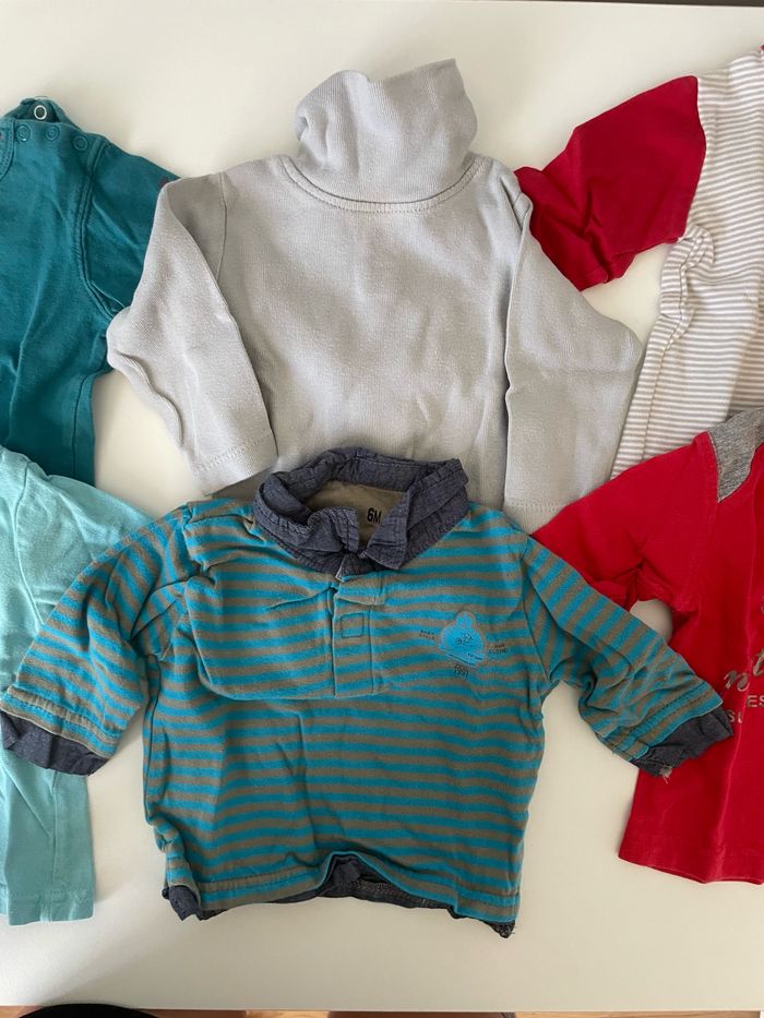 Lot 6 tee-shirts manches longues Différentes marques (cf photos) 6 mois Bon état