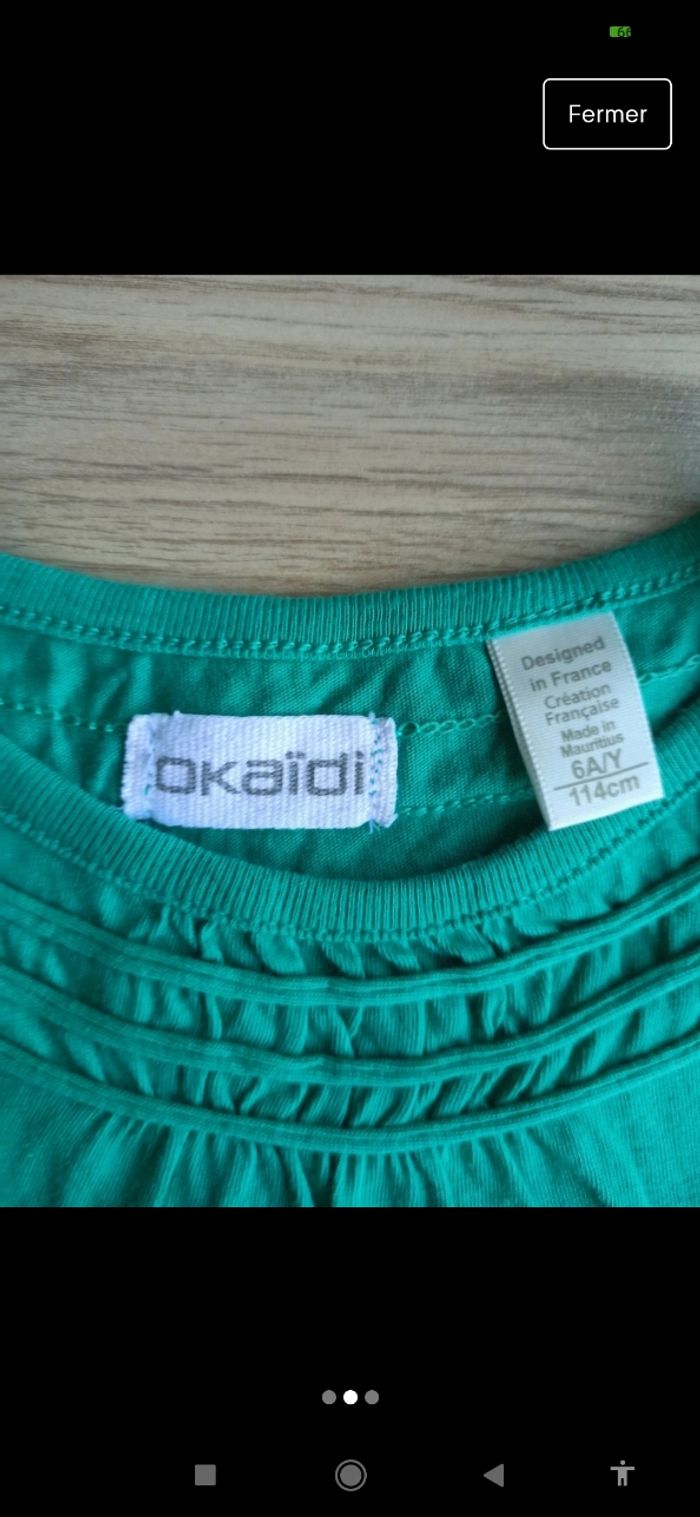 Débardeur T shirt manches courtes vert d'eau okaidi 6 ans - photo numéro 3