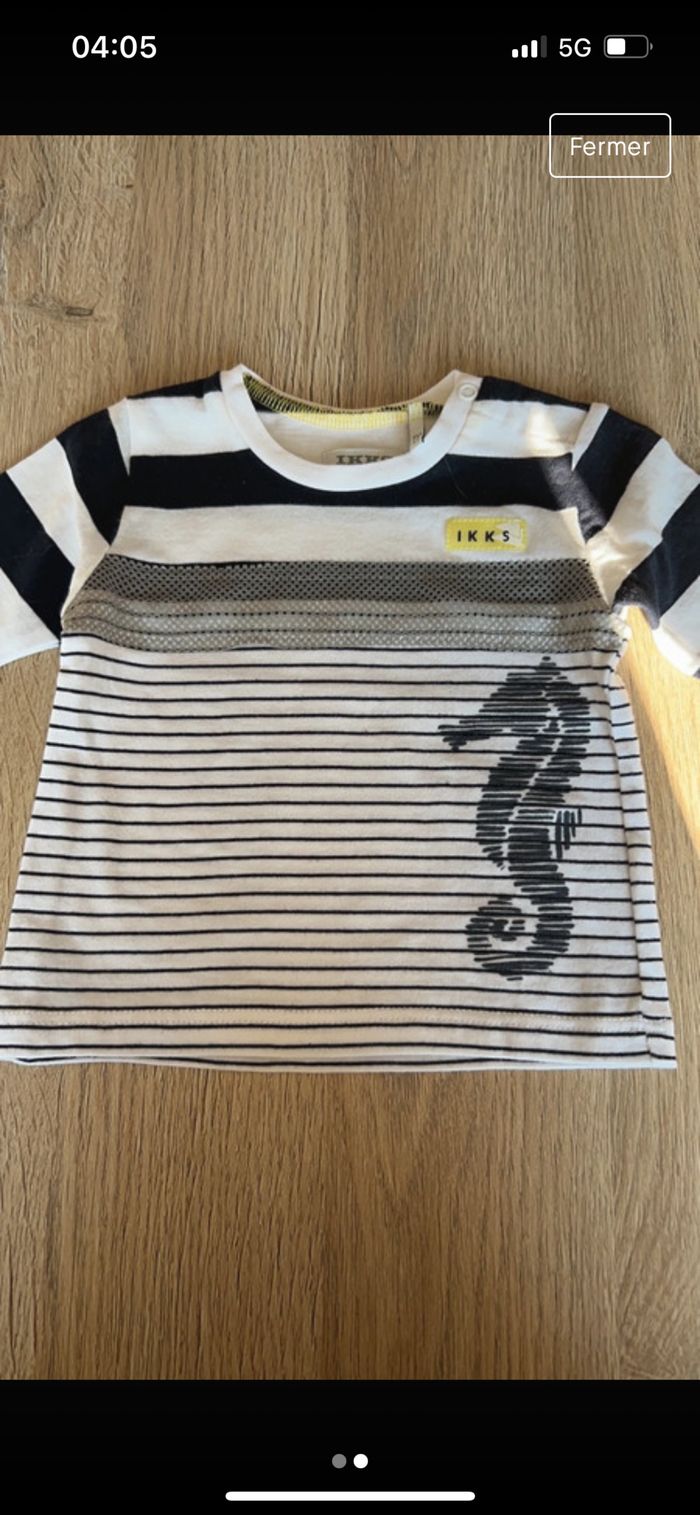 Bonjour Je vends ce t-shirt manches longues taille 3 mois de la marque IKKS jamais porté