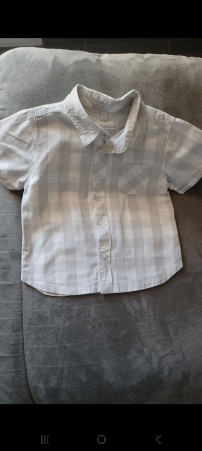 Carreaux gris clair et blanc #Kitchoun18mois #vetementgarçon18mois #chemisegarçon18mois