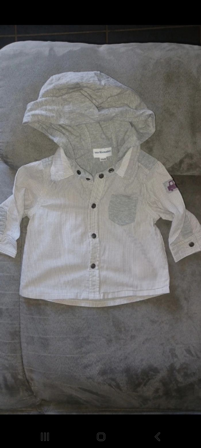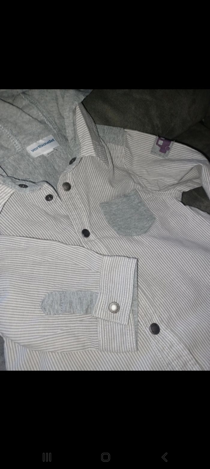 Chemise rayée Capuche et details gris façon tee shirt Pressions #vertbaudetgarçon6mois #chemisegarçon6mois #vetementgarçon6mois