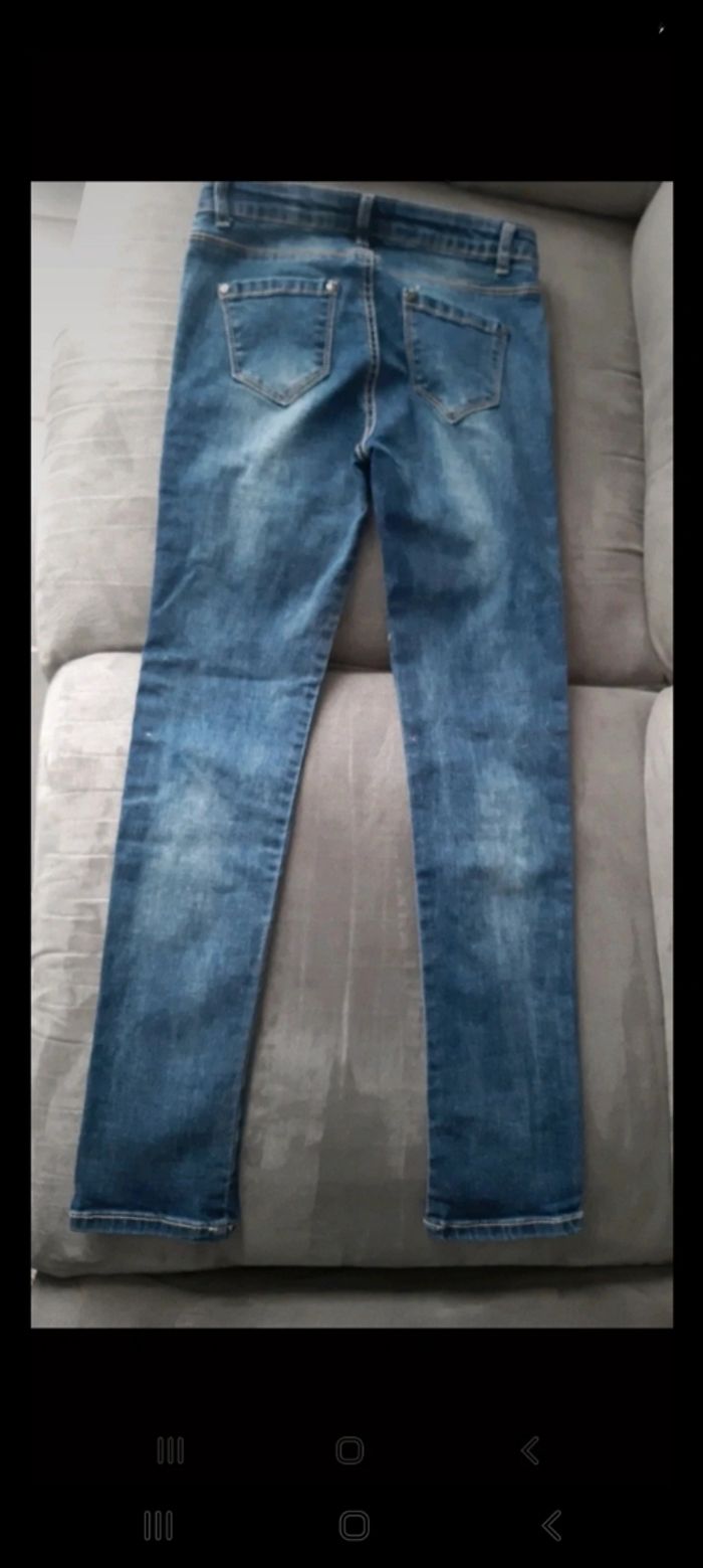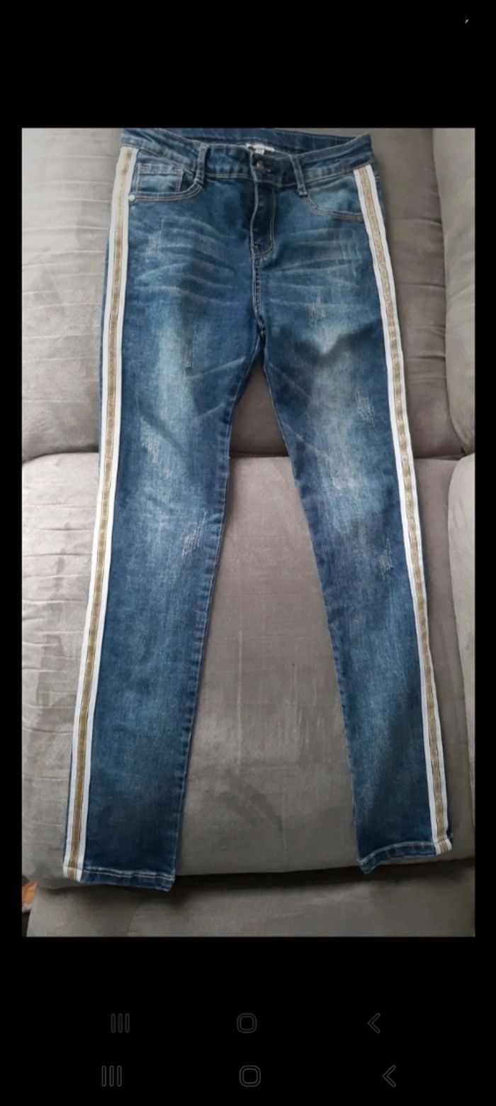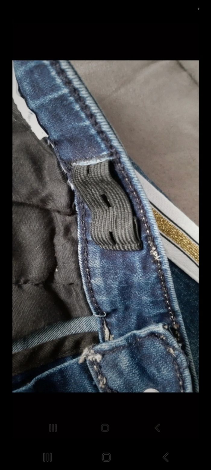 Slim Bandes côtés dorées et blanches Effet used à certains endroits Taille non réglable car j ai enlevés les boutons. 12 ans Parfait état #slim12ansfille #fille12ans #slim