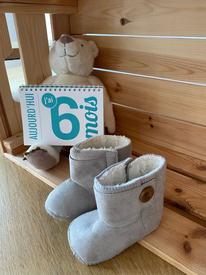 Bottines bebe souples (chaussons) en suédine Adapté aux bebe d’environ 6M Gris clair/beige Autres articles bébé #beebsmelie1M #beebsmelie3M #beebsmelie6M