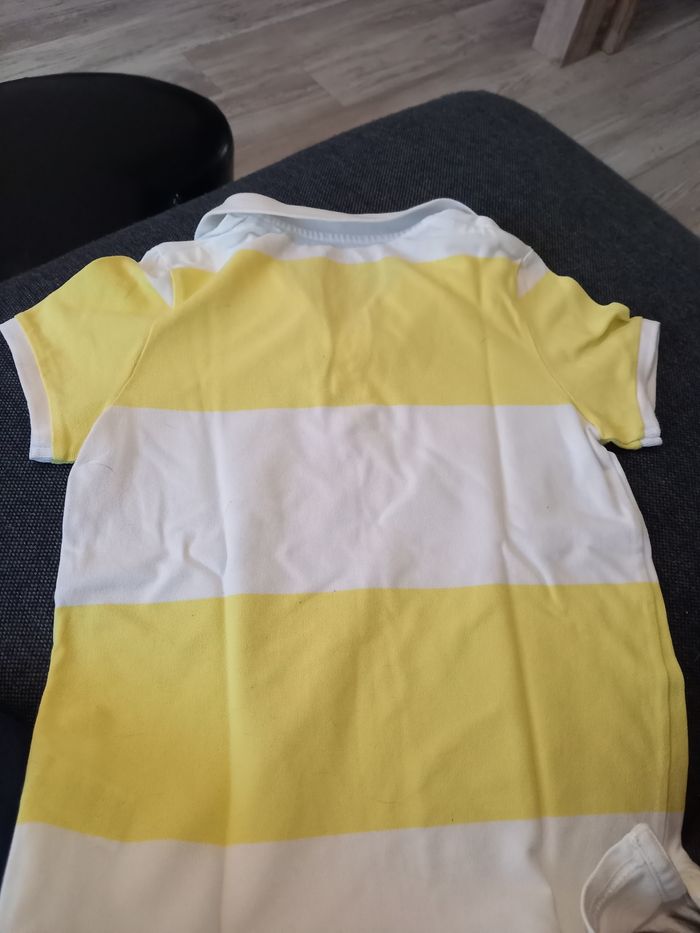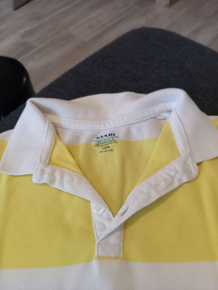 Polo manches courtes rayé jaune et blanc. Fermé avec 3 boutons. Col rond. Lavé avant envoi. Si possible choisir Mondial Relay pour l'envoi. #kiabi #garçon #10ans #polomanchescourtes