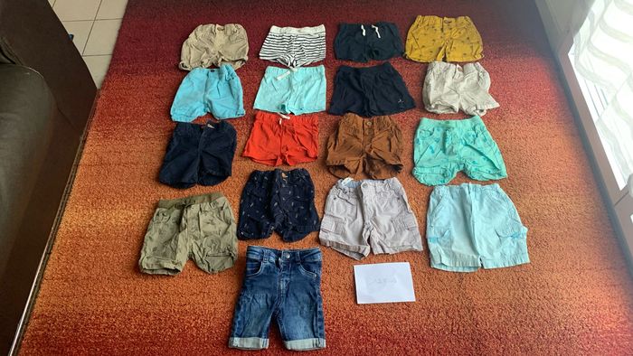 Vends 17 shorts 4 leggings 4 joggings 4 jeans 2 salopettes 5 bodys dont 2 tachés 8 tee-shirts sans manches 2 polos manches courtes 4 chemises manches courtes 4 tee-shirts manches longues 3 chemises à manches longues 3 pyjamas dont 2 tachés 2 boléros Le lot 50€