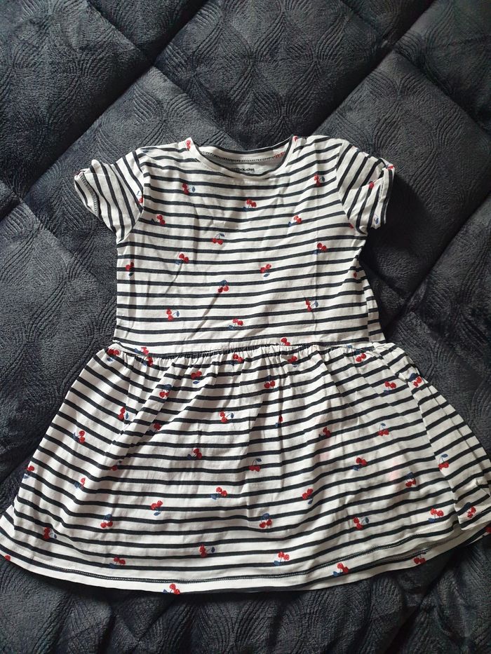 Divers marques vert baudet licence etc la robe avec des cerises à 2/3 petites taches se melent au motifs